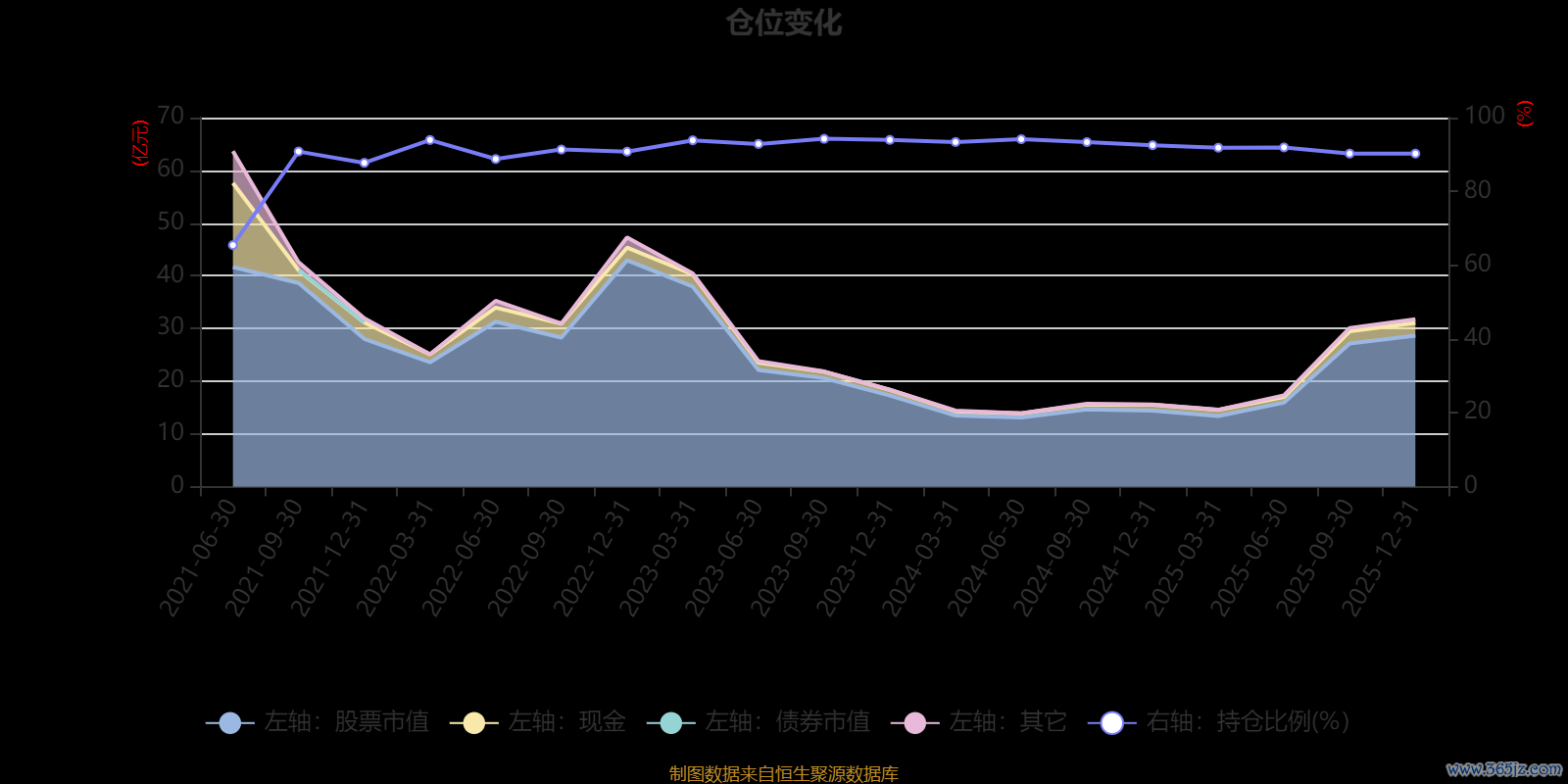 据定期报告数据统计,近三年平均股票仓位为92.72%,同类平均为87.64%。2023年三季度末基金达到94.26%的最高仓位,2021年上半年末最低,为65.44%。