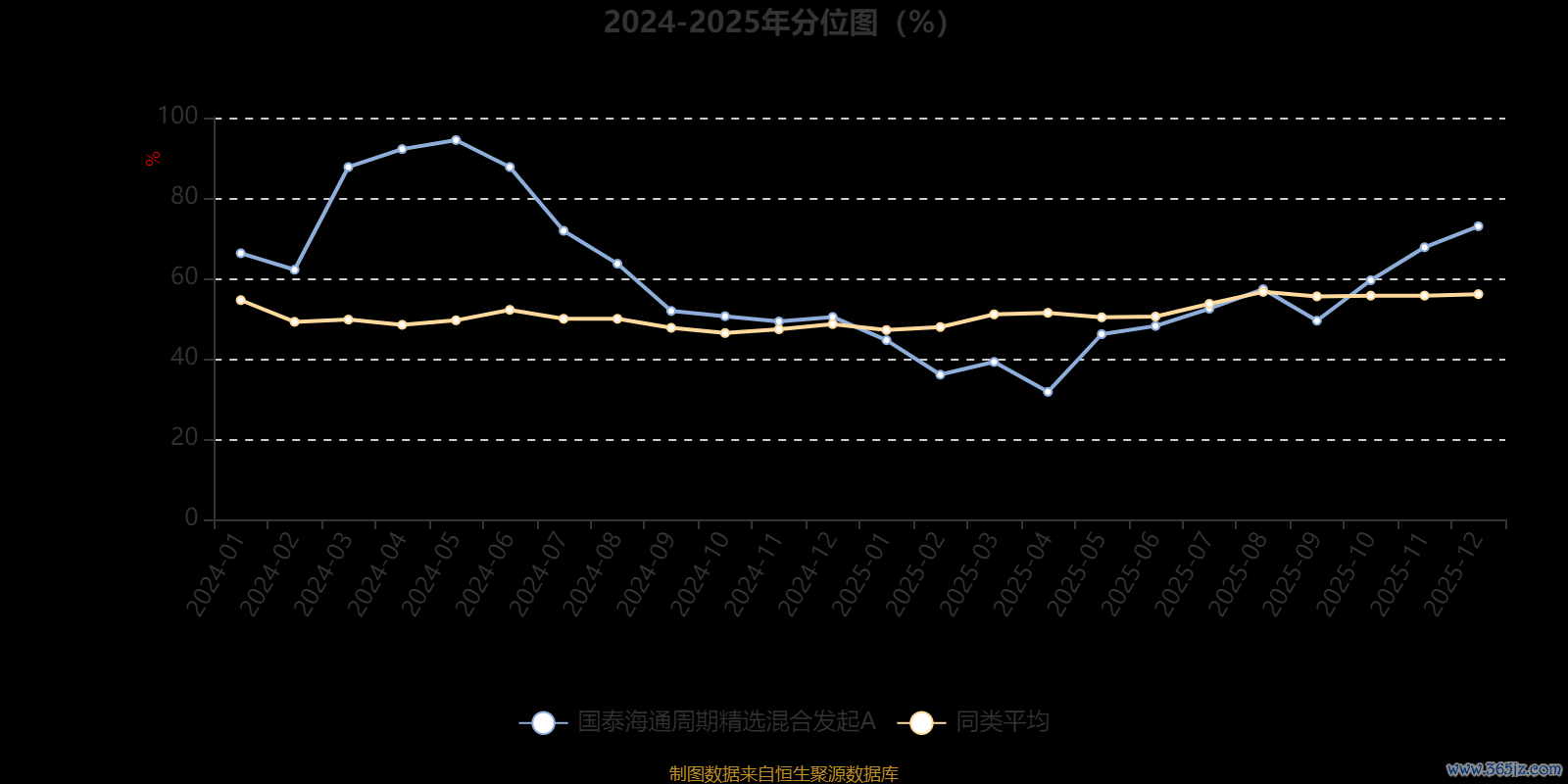 通过所选区间该基金净值增长率分位图银泰融通,可以观察该基金与同类基金业绩比较情况。图为坐标原点到区间内某时点的净值增长率在同类基金中的分位数。